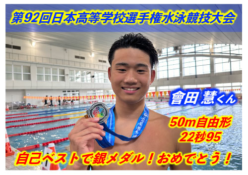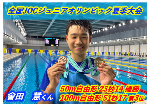 また、日本では全国ジュニアオリンピックにて會田選手が50m自由形で優勝!