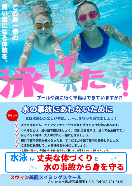 水泳は丈夫な体づくりと水の事故から身を守ります!!