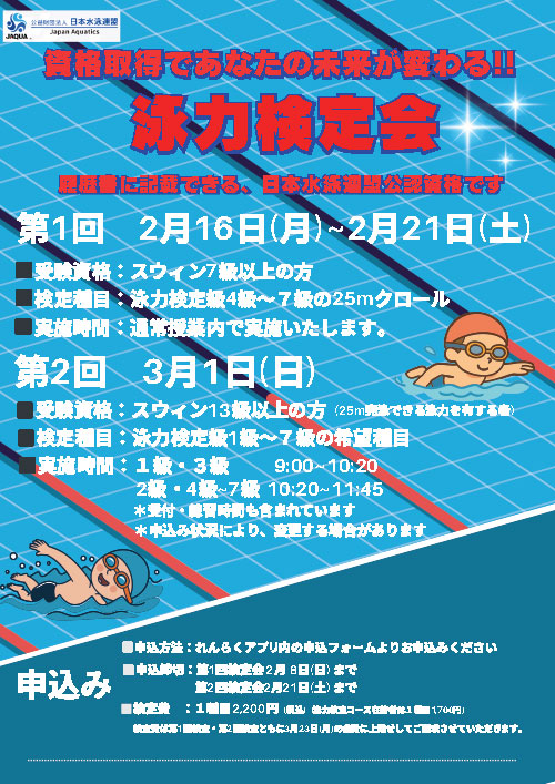 泳力検定コース体験受付中